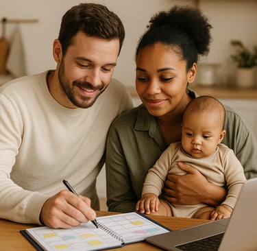 Descubra como a coparentalidade — o cuidado compartilhado entre pai e mãe — pode transformar a rotina com o bebê em uma experiência mais leve, equilibrada e conectada. Neste artigo, você vai encontrar dicas práticas para dividir tarefas com harmonia, criar um calendário familiar funcional e fortalecer o apoio mútuo no dia a dia. Com base em estudos e exemplos reais, mostramos como pequenos ajustes na convivência geram grandes impactos no bem-estar da família inteira. Ideal para quem deseja construir uma parentalidade mais consciente e colaborativa.